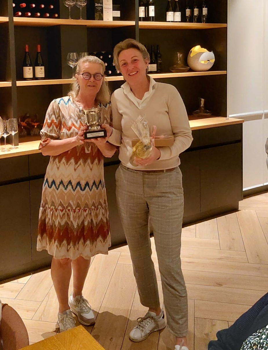 Op de foto boven reikt de Secretaris de beker uit aan onze winnares Miranda. Proficiat!