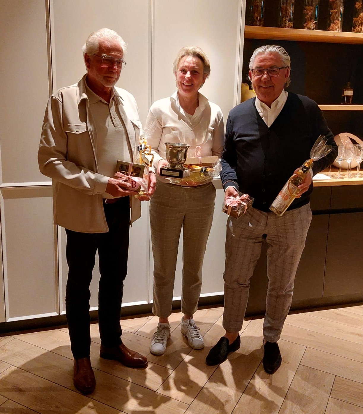 Na een kopje koffie met vlaai op het terras begonnen we om 12.00 uur aan de wedstrijd samen met onze partners die echter alleen voor spek en bonen mochten meedoen. Na 18 holes kwam iedereen na 16.00 uur weer terug op hole 19 en werden we getrakteerd op een borrelhapje en drankje. Na het omkleden gingen we gezamenlijk aan tafel in ons restaurant Laurius en hebben we avondvullend genoten van een heerlijk driegangen diner met natuurlijk de prijsuitreiking.