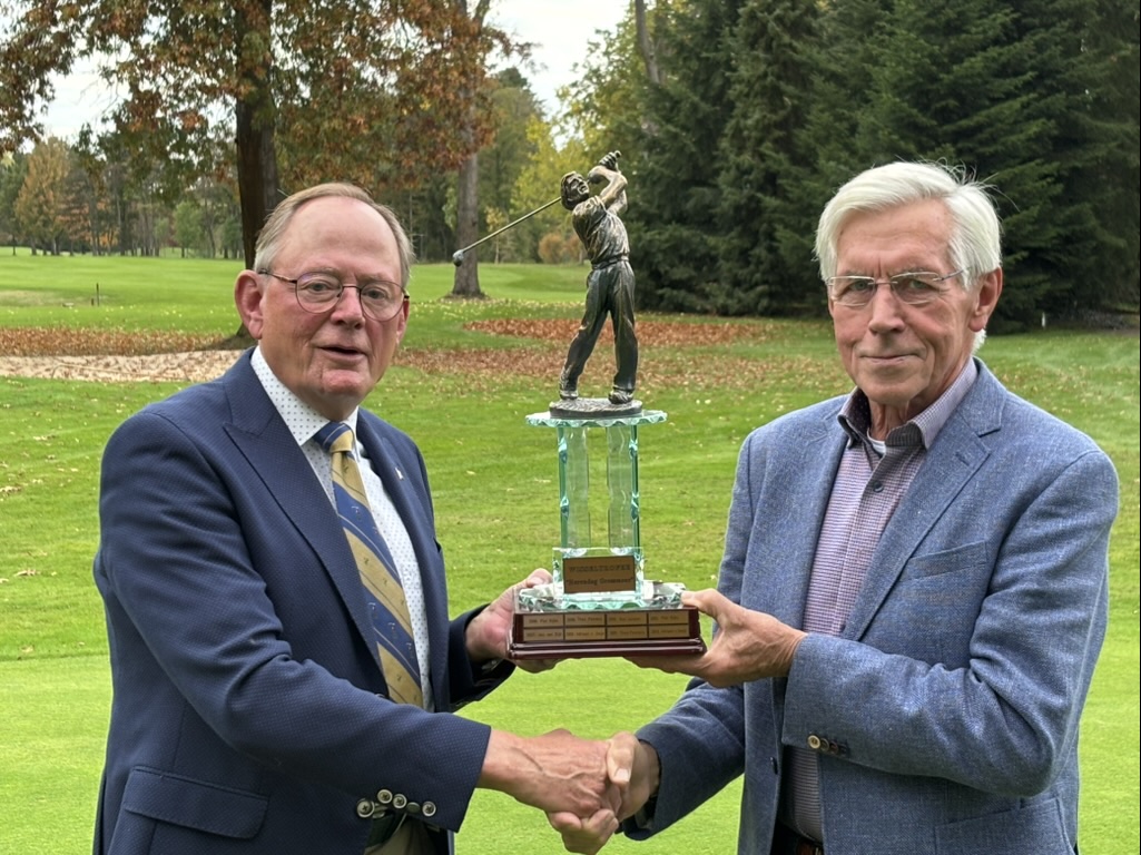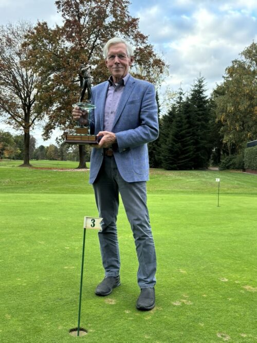 Harry Driessen kon hem na de Slotwedstrijd de wisseltrofee overhandigen. Het is voor de derde keer in Piet’s golf-carrière op Crossmoor dat zijn naam op deze trofee staat.